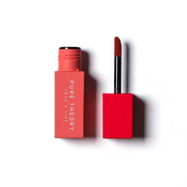 Los pigmentos en Pure Theory Love X Life Lip Tint ($16) tienen una gran duración, mientras que la textura aireada parece desafiar la gravedad. Es una tinta sorprendente con acabado mate.
