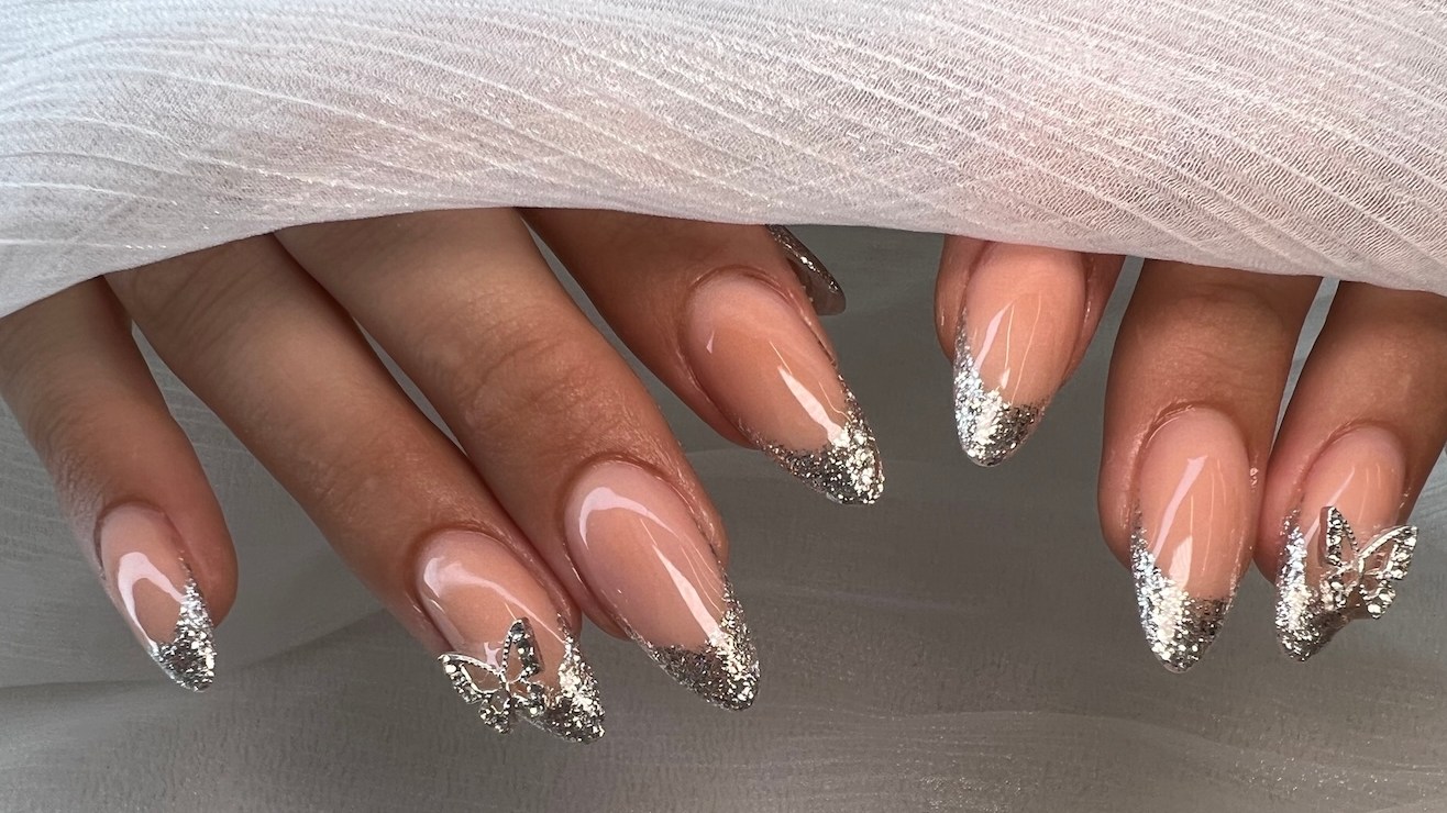 Tutorial de manicure francés plateado #3: glitter